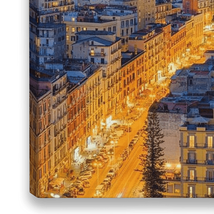 Aufnahme von Neapel bei Nacht mit schönen Lichtspuren vom Verkehr der Stadt. Im Hintergrund: der Golf von Neapel und der Vesuv