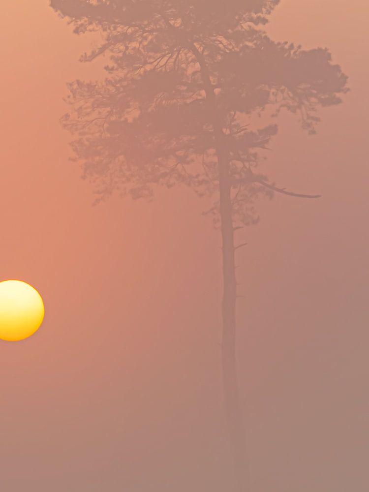 Ein märchenhafter, nebliger Sonnenaufgang am Hatertse vennen, in der Nähe von Nijmegen.