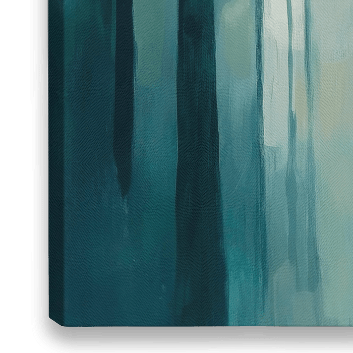 In sanften Blau- und Grautönen entfaltet sich eine magische Waldlandschaft, in der hoch aufragende Baumstämme sanft im Nebel verschwinden. Die verträumte Atmosphäre lädt zum Träumen ein und schafft eine beruhigende Oase. Perfekt für das Schlafzimmer, um eine entspannte und friedliche Umgebung zu schaffen.