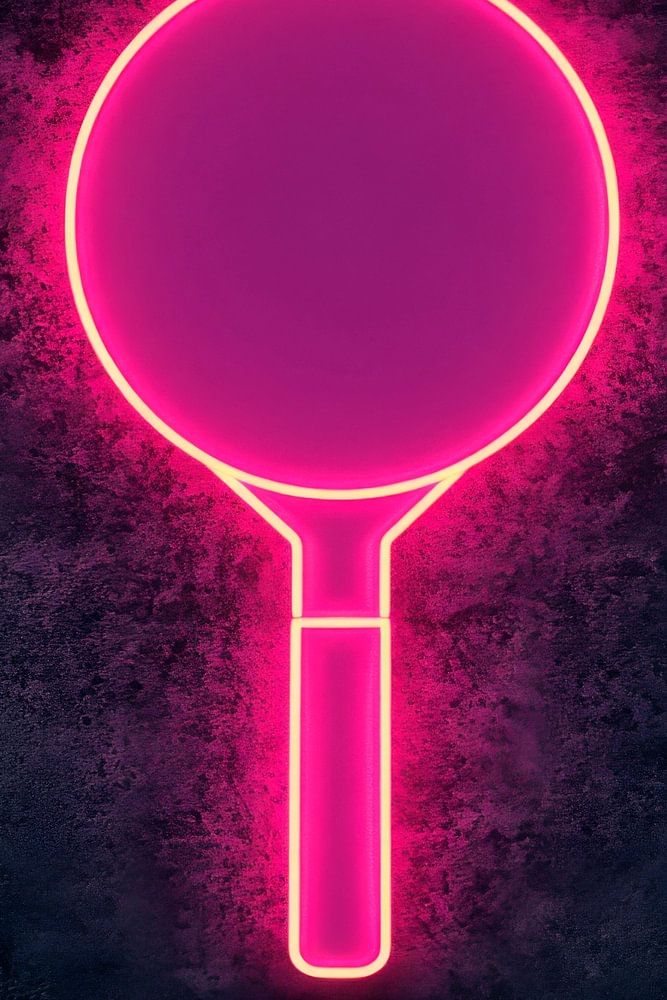 Ein leuchtendes, neonglühendes Objekt strahlt in einem tiefen, mysteriösen Schwarz. Die stilisierte Form, mit einer perfekt runden Oberseite und einem langen Griff, zieht die Blicke an und entfaltet eine faszinierende Energie. Es wirkt, als würde es zwischen den Welten der Realität und Fantasie schweben, bereit, den Betrachter in eine neue Dimension zu entführen.