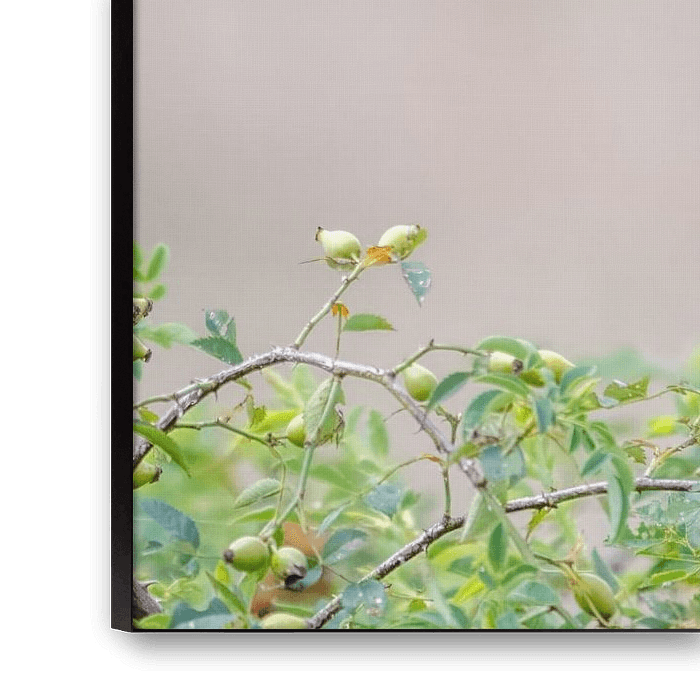 Von der Spitze des Hagebuttenstrauchs aus hatte dieser Neuntöter einen schönen Blick auf die Umgebung. Dann breitete er seine Flügel aus und flog zu einer anderen Stelle. Der weiche Hintergrund sorgt dafür, dass der Fokus ganz auf dem Neuntöter liegt.