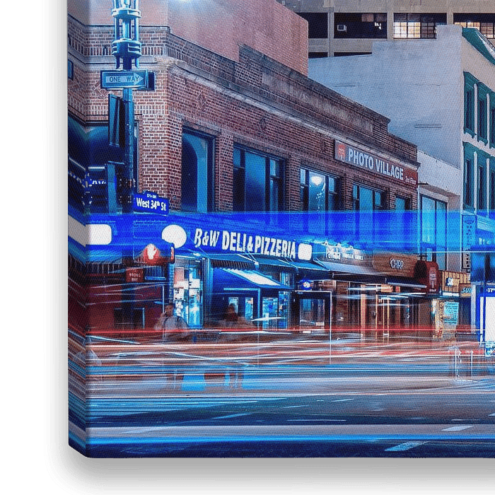 Bestelle das Foto New York City bei Nacht von Sascha Kilmer als Reproduktion auf Leinwand, Alu-Dibond, als Poster, Fototapete oder Acrylglasbild.