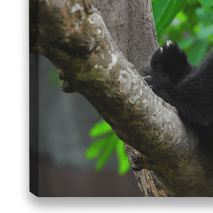 Junger Riesenpandabär in einem Baum. Der Panda ist eine geschützte Art und das Symbol des World Wildlife Fund. Diese Tiere kommen in freier Wildbahn nur in China vor, oft in höheren Gebirgen, und ihre Nahrung besteht hauptsächlich aus Bambus.