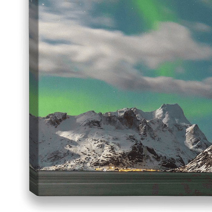 Die Lofoten befinden sich in Nordnorwegen, weit über dem Polarkreis. In den Wintermonaten, wenn das Wetter klar ist, kann man Polarlicht (Aurora Borealis) beobachten. Hier sehen wir ihn hinter dem Berg Olstinden in Reine.
