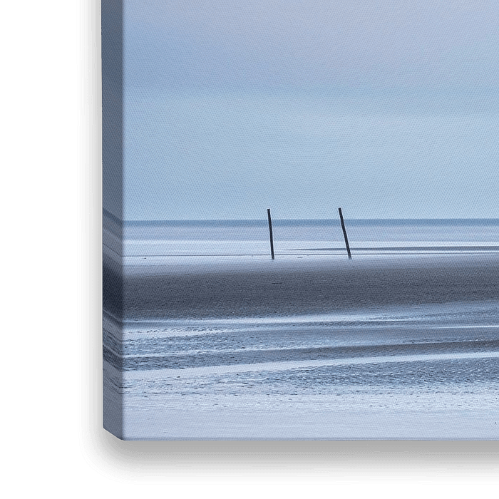 Eine Langzeitbelichtung der Strandkorbplattform am Strand der Nordsee von Sankt Peter-Ording