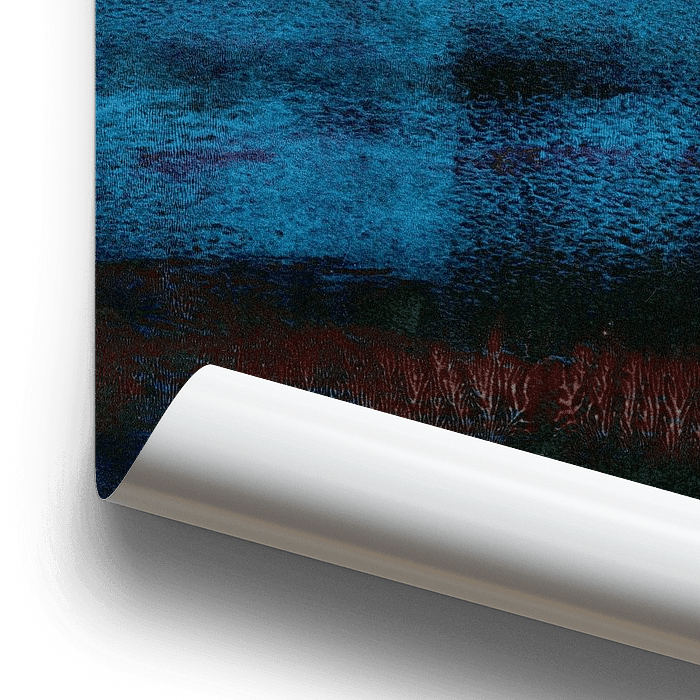 Bestelle dieses Landschafts-Wandbild Nostalgischer Horizont. Abstrakte Malerei in dunklem satten Blau, Grün, Lila von Dina Dankers als Reproduktion auf Leinwand, Alu-Dibond, als Poster, Fototapete oder Acrylglasbild.