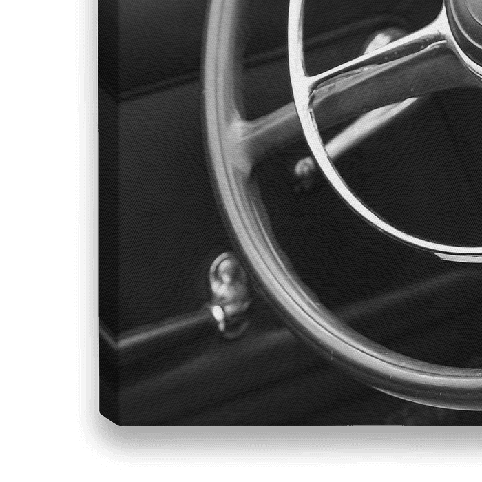 Nostalgisches Cockpit eines alten Oldtimers, Schwarz-Weiß-Fotografie