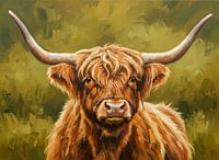 Bestelle dieses Schottische Hochlandrind Wandbild Ölgemälde eines schottischen Highlanders von By Marjolein Design als Kunstdruck auf Leinwand, Alu-Dibond, als Poster, Fototapete oder Acrylglasbild.