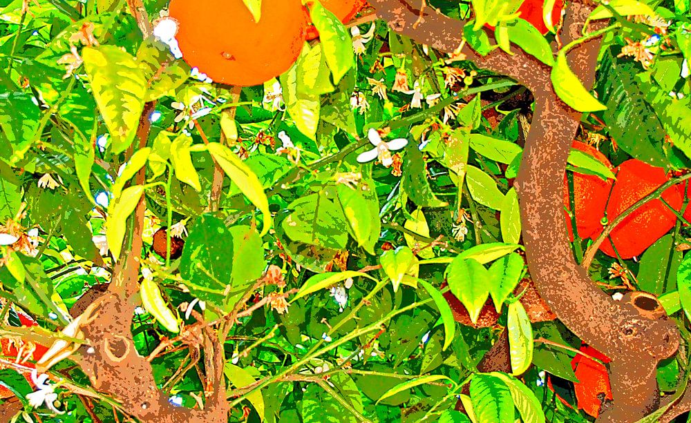 Bestelle dieses Blumen-Wandbild Orangenbaum von Leopold Brix als Reproduktion auf Leinwand, Alu-Dibond, als Poster, Fototapete oder Acrylglasbild.