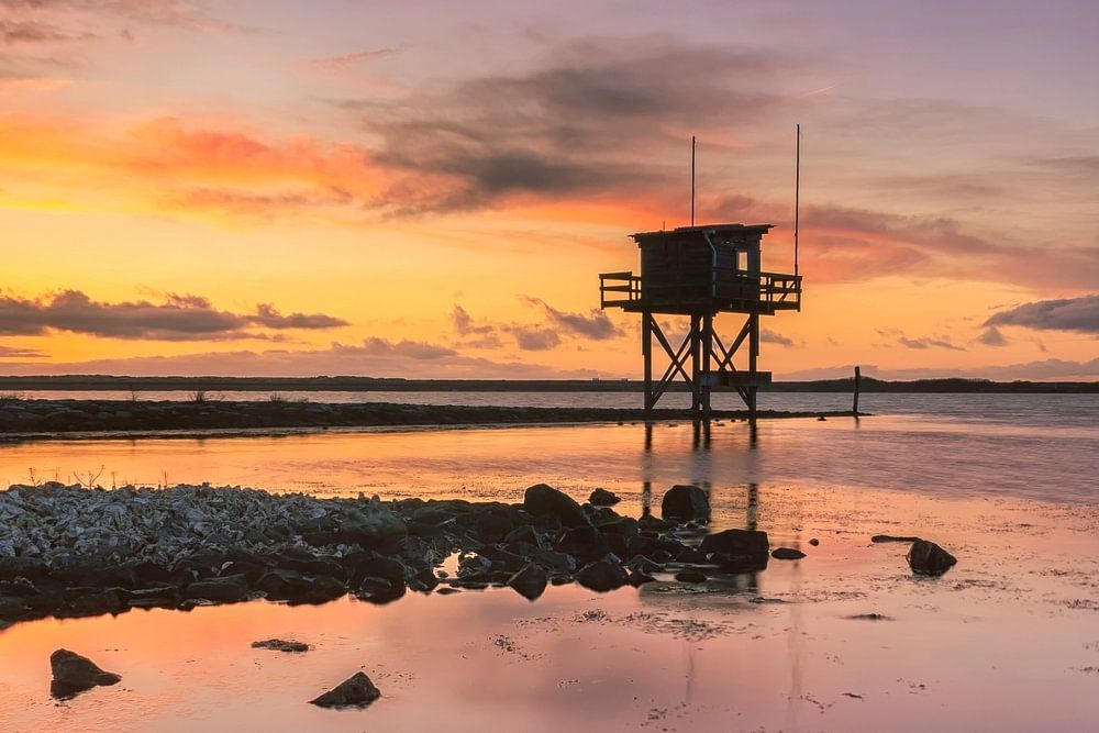 Ein Bild von Lake Grevelingen in der Nähe von Scharendijke (Zeeland, Niederlande) während eines Sonnenuntergangs. Der ganze Tag war regnerisch Wetter. Eng hielt ich die Satellitenbilder in die Löcher. Noch nach Zeeland gereist und ich habe es nicht bereut. Ein wunderbarer Ort für Landschaftsfotografie
