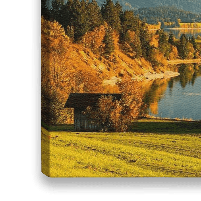 Herbst, und Sonnenaufgang am Forggensee in Süddeutschland bei Füssen im Königswinkel, im Landkreis Ostallgäu.