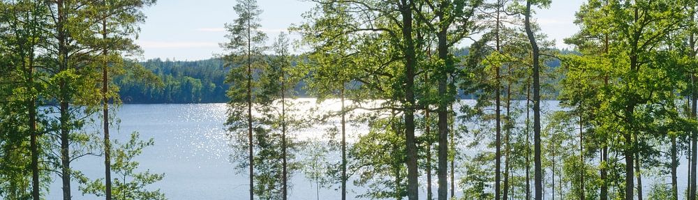 Panorama des schwedischen Sees Gissen in der Region Kalmar im Licht der nachmittäglichen Sommersonne