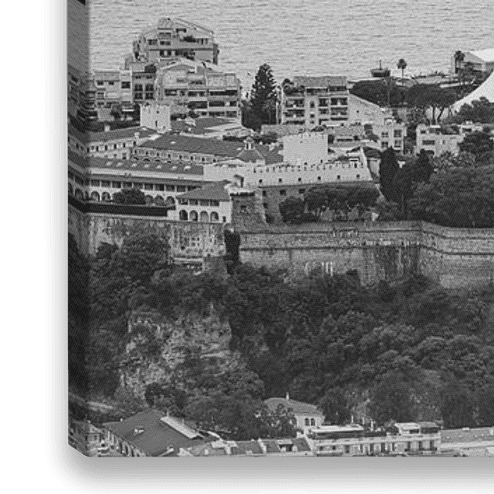 Ein breites 3:1-Panoramabild der Ansicht von Monte Carlo (Monaco) vom Aussichtspunkt Beausoleil in Südfrankreich aus gesehen.