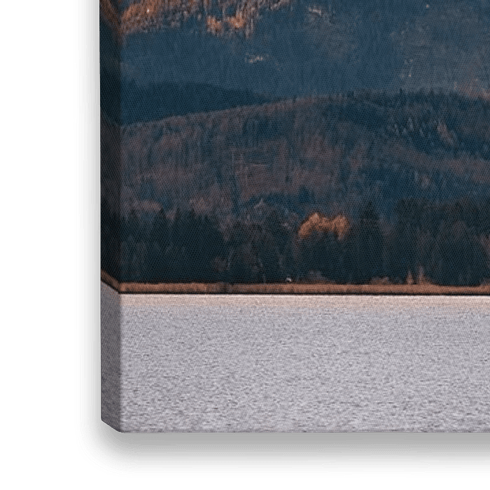 Ein Panoramafoto von einem Sonnenaufgang mit Herbstfarben am Hopfensee, in der Nähe der Stadt Hopfen am See, mit den Allgäuer Alpen im Hintergrund.