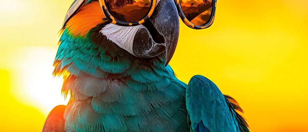 Mit seinem schillernden Gefieder und den coolen Sonnenbrillen strahlt dieser Papagei pure Lebensfreude aus. Hinter ihm entfaltet sich ein atemberaubender Sonnenuntergang, der sofort gute Laune verbreitet. Perfekt für das Wohnzimmer, bringt dieses Kunstwerk ein Gefühl von Entspanntheit und Abenteuer in jeden Raum und wird zum Blickfang für alle Gäste.