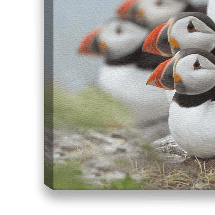 Papageientaucher auf einem Felsen.