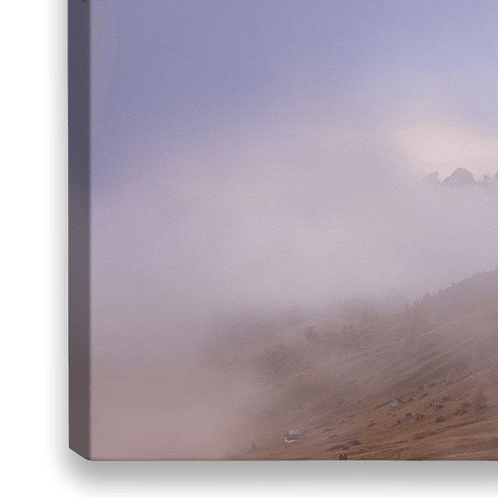 Der Passo Giau ist einer der Pässe in den Dolomiten in Italien. Der Pass ist 2236 Meter hoch und verbindet die Stadt Cortina d'Ampezzo mit der Stadt Selva di Cadore. Das Foto wurde vom Pass aus in Richtung Mount Nuvolau aufgenommen, kurz nachdem die Sonne untergegangen war und sich der Nebel aus dem Tal gelichtet hatte.