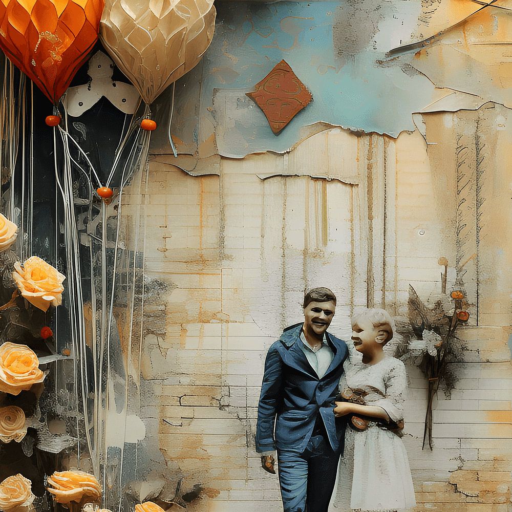 Der Stil wird Scrapbooking genannt. Er verleiht dem Bild Tiefe und