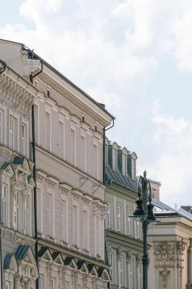 Als ich das erste Mal nach Krakau kam, war ich sofort von den schönen pastellfarbenen Gebäuden und der Architektur fasziniert. Krakau ist eine wunderschöne Stadt, in der - nicht unwichtig - im Sommer schönes Wetter herrscht! Dieses Foto zeigt einige der pastellfarbenen Häuser auf dem Hauptmarkt der Stadt mit Menschen beim Einkaufen und Straßencafés im Vordergrund. Der Ausschnitt macht das Bild immer wieder interessant.
