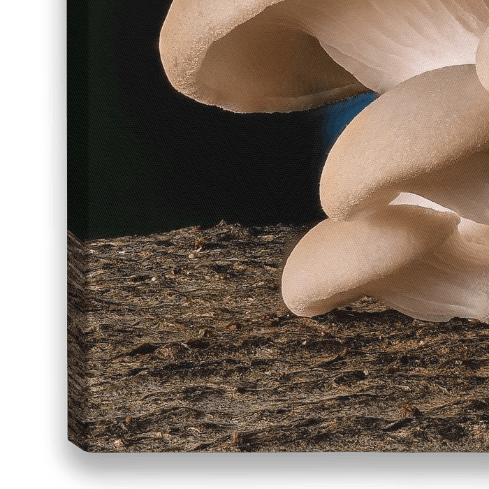 Makrofotografie einer Gruppe Pilze, die den Namen "Verzweigter Austernseitling" oder auch "Rillstieliger Seitling" tragen. Der lateinische Name diese Pilzes ist PLEUROTUS CORNUCOPIAE. Dieses Motiv ist nicht nur als Wandbild, sondern auch auch als Poster oder Fototapete geeignet.