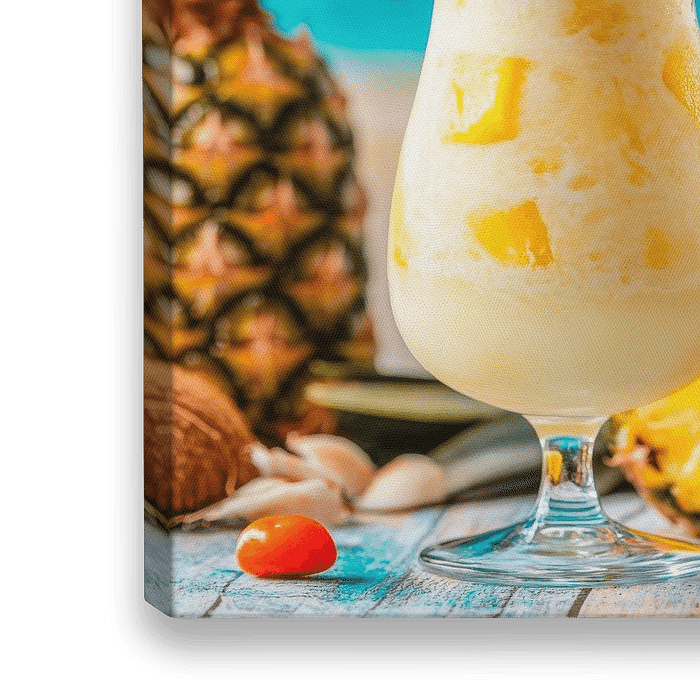 Ein erfrischender Genuss, der den Geschmack von Sommer und tropischen Stränden einfängt! Der lebendige Kontrast von gelber Ananas und einem Hauch von Rot sorgt für gute Laune. Ideal für die Küche oder das Wohnzimmer, wo er Urlaubserinnerungen weckt und Urlaubsfeeling verbreitet. Perfekt für entspannte Abende mit Freunden!