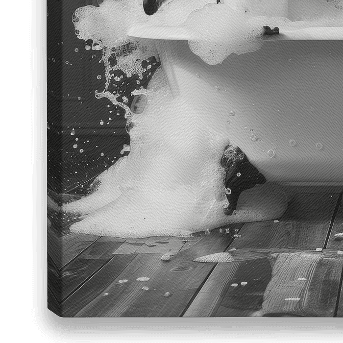 Dieses entzückende Badezimmerkunstwerk zeigt zwei verspielte Pinguine, die fröhlich in ihrer Badewanne planschen und Ihrem WC eine herrlich amüsante Atmosphäre verleihen. Die Schwarz-Weiß-Fotografie fängt die lebhafte Natur der Pinguine ein und betont die Details der Szene, wodurch es eine charmante und einzigartige Ergänzung für Ihre…