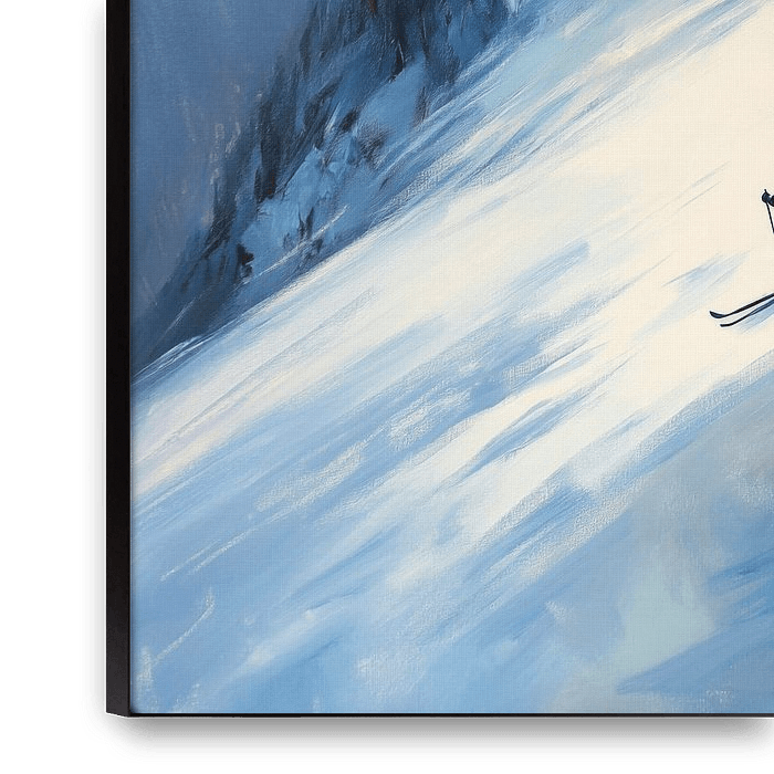 Inmitten einer majestätischen Winterlandschaft durchbricht ein einsamer Skifahrer die makellose Schneedecke. Die kühlen Blautöne des Himmels verschmelzen mit den schroffen Bergspitzen, während die kraftvolle Bewegung des Fahrers die Stille der Natur in Schwung bringt. Ein wahrer Tanz der Freiheit und Adrenalin, eingefangen zwischen…