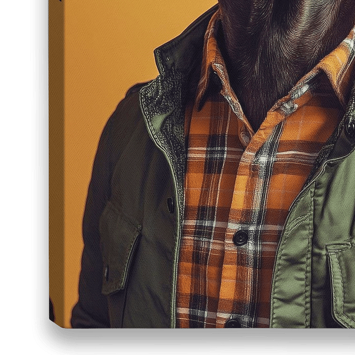 Mit einem charmanten Blick und einem stilvollen grauen Hut verkörpert dieser Plott Hound Eleganz und Charakter. Sein glänzendes, dunkles Fell harmoniert perfekt mit dem karierten Hemd und der lässigen Jacke. Die Kombination aus neugierigem Ausdruck und modischem Auftreten bringt eine ganz besondere Note in seine Persönlichkeit. Ein…