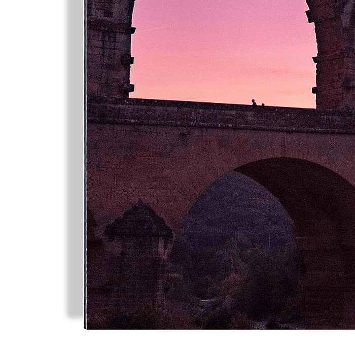 Ich ließ also alles stehen und liegen, schnappte meine Kamera und schoß u.a. dieses stimmungsvolle Foto der Pont du Gard im violetten Abendlicht.