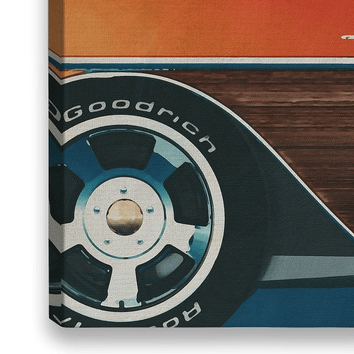 Die Pontiac Safari Station Wagon Surfer Edition 1956 ist ein Außenseiter unter den Oldtimern. Dieses Detailgemälde zeigt sich am besten in einem Interieur, das Abenteuer und Liebe zum Meer widerspiegelt.