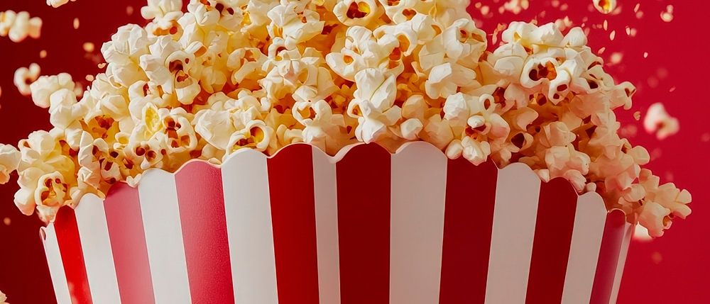 Inmitten eines spritzigen Hintergrunds entfaltet sich ein Übermaß an flauschigem Popcorn, das förmlich aus seinem rot-weißen Behälter springt. Diese verspielte Szenerie weckt Erinnerungen an Kinobesuche und gemütliche Filmabende. Ideal für die Küche oder das Wohn- und Esszimmer, bringt dieses Bild Freude und eine Prise Nostalgie in jeden Raum.