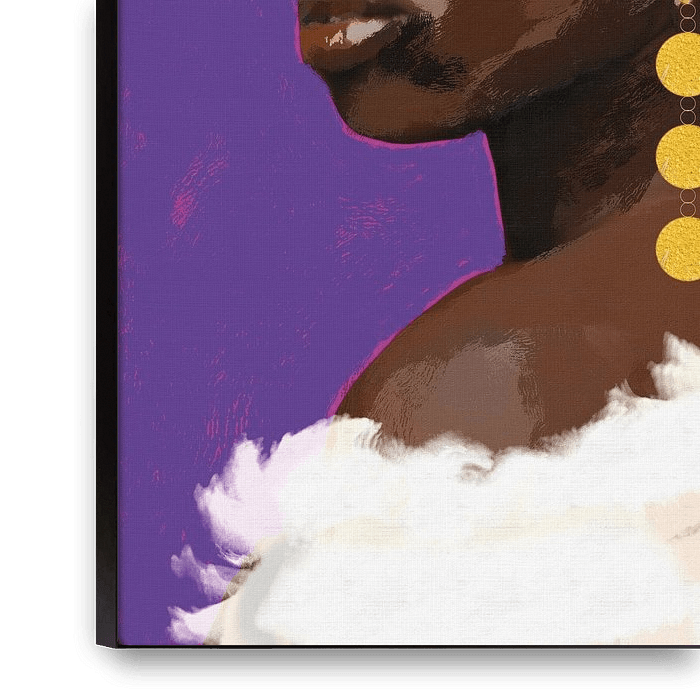 Bestelle dieses Porträt Porträt einer afrikanischen Frau mit schönen goldenen Ohrringen und weißer Feder von MadameRuiz als Reproduktion auf Leinwand, Alu-Dibond, als Poster, Fototapete oder Acrylglasbild.