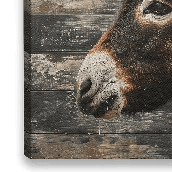 Fotorealistisches Motiv eines Esels vor einer Holzwand.