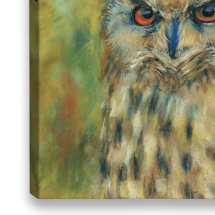 Bestelle dieses Landschafts-Wandbild Portrait eines Sibirischen Uhus Pastellgemälde von Karen Kaspar als Reproduktion auf Leinwand, Alu-Dibond, als Poster, Fototapete oder Acrylglasbild.