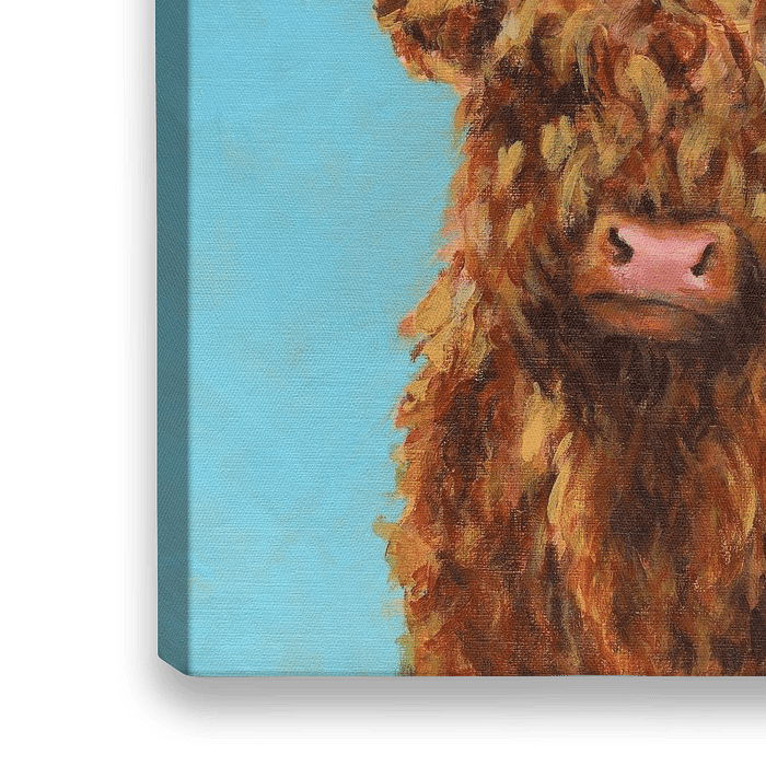 Das Porträt eines lockigen Hochlandrinds ist ein handgefertigtes Acrylgemälde der Künstlerin Karen Kaspar.