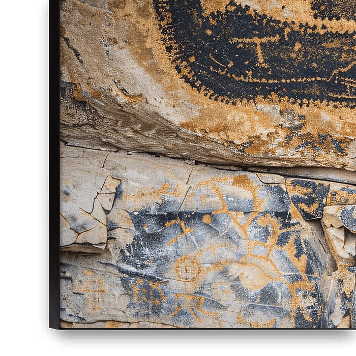 Entdecken Sie die zeitlose Schönheit der prähistorischen Kunst mit diesem ungewöhnlichen Design. Ein sanfter Sepiaton ziert die Petroglyphe, die ein Kanu mit Ruderern darstellt. Diese tief in der Geschichte verwurzelte Kunst regt die Fantasie an und erzählt eine Geschichte von Reisen und Entdeckungen. Dieses Stück antiker Kreativität…