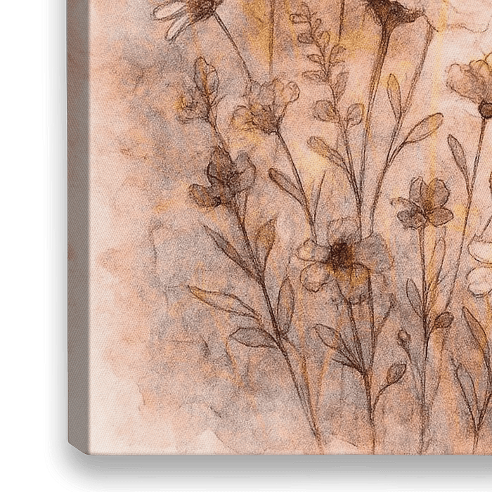 Pusteblumen und Wildblumen im romantischen Stil in warmen Farbtönen. Bringt wohlige Wärme an deine Wand