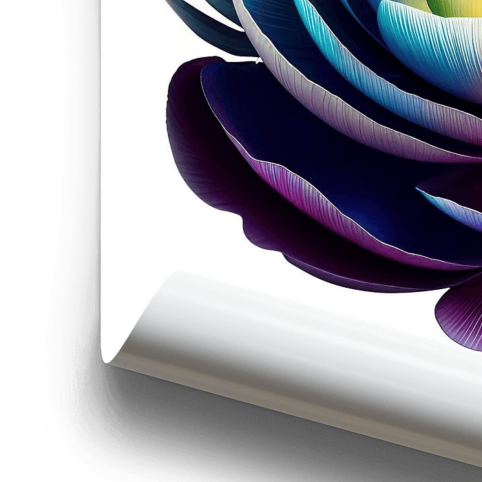 Das Motiv der Blüte erinnert an eine Ranunkel, eine Blume, die für ihre dichten, üppigen Blüten bekannt ist. Ranunkeln stehen symbolisch für Charme und Attraktivität, was dieses Bild besonders ansprechend macht. Die kunstvolle Darstellung kombiniert natürliche Schönheit mit moderner Ästhetik, was es zu einem perfekten Beispiel für zeitgenössische Kunst macht.