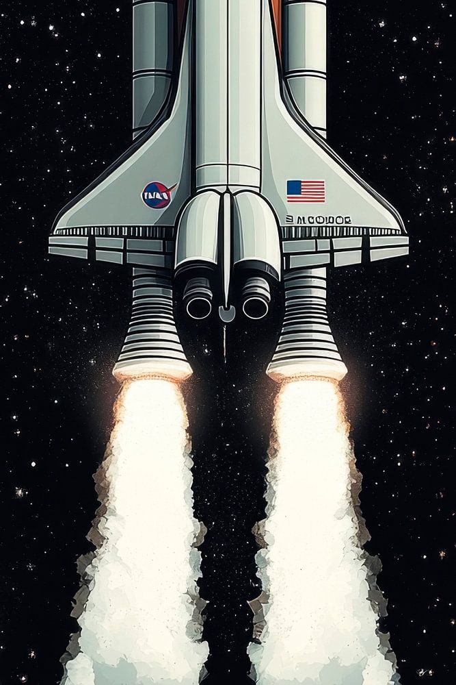 Inmitten der unendlichen Dunkelheit des Weltraums erhebt sich ein majestätischer Raumfähre mit kraftvollen Triebwerken, die strahlend weiße Wolken hinter sich lassen. Ihre glänzende Oberfläche reflektiert das Licht der fernen Sterne, während sie entschlossen dem Horizont des Unbekannten entgegenfliegt. Dieses Bild verkörpert den unerschütterlichen menschlichen Drang, das Universum zu erkunden.