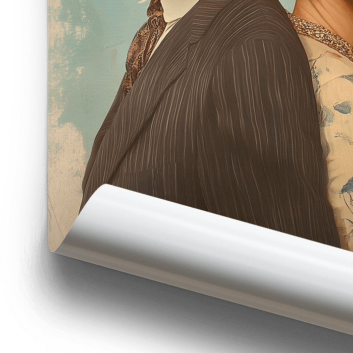 Dieses faszinierende Porträtgemälde zeigt die beiden ikonischen Künstler Frida und Salvador Dalí in einer ausdrucksstarken Komposition.