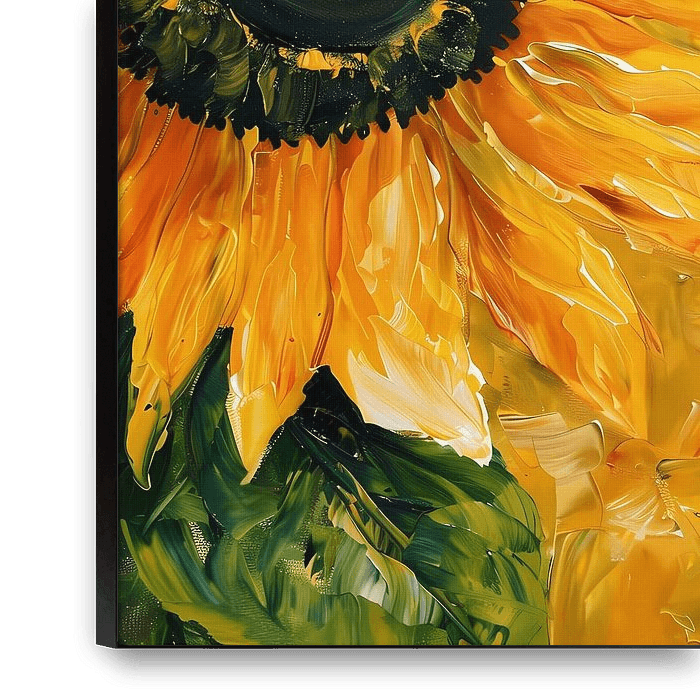 Bestelle dieses abstrakte Wandbild Realistische Malerei einer bunten Sonnenblume von Art & Soul Creations als Reproduktion auf Leinwand, Alu-Dibond, als Poster, Fototapete oder Acrylglasbild.