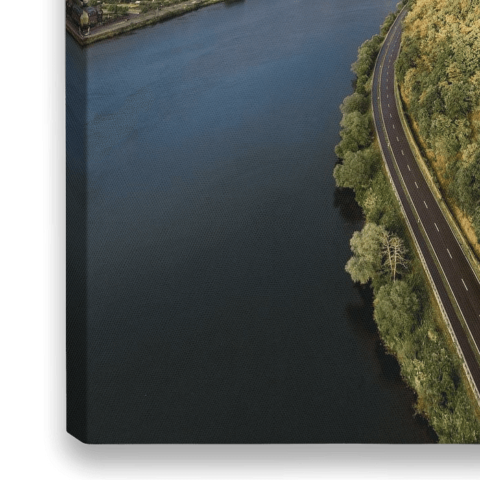 Bestelle dieses Landschafts-Wandbild Regenbogen über der Mosel in Deutschland von Visuals by Justin als Reproduktion auf Leinwand, Alu-Dibond, als Poster, Fototapete oder Acrylglasbild.