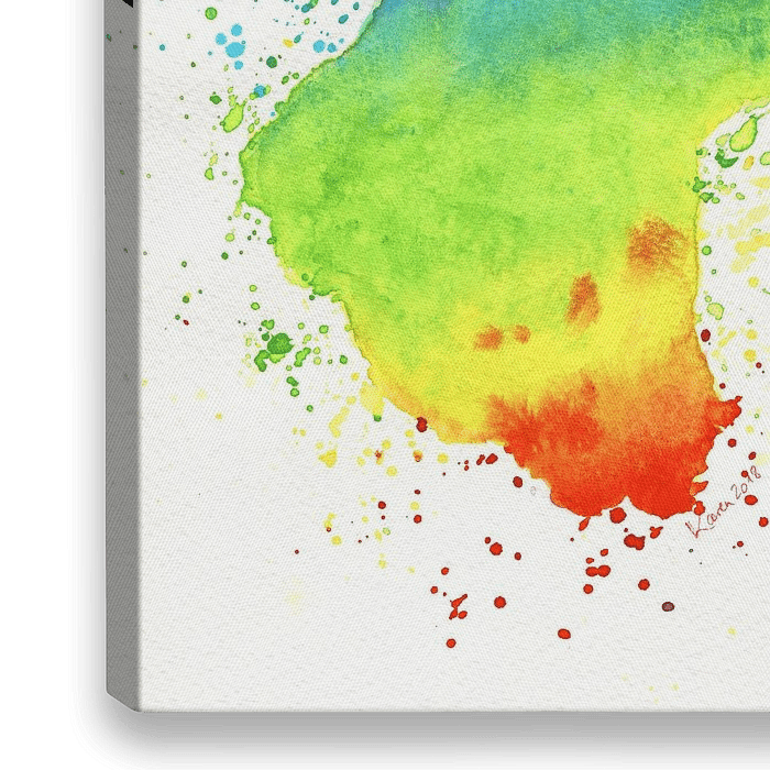 Bestelle dieses Porträt Regenbogenkatze Aquarellgemälde von Karen Kaspar als Reproduktion auf Leinwand, Alu-Dibond, als Poster, Fototapete oder Acrylglasbild.