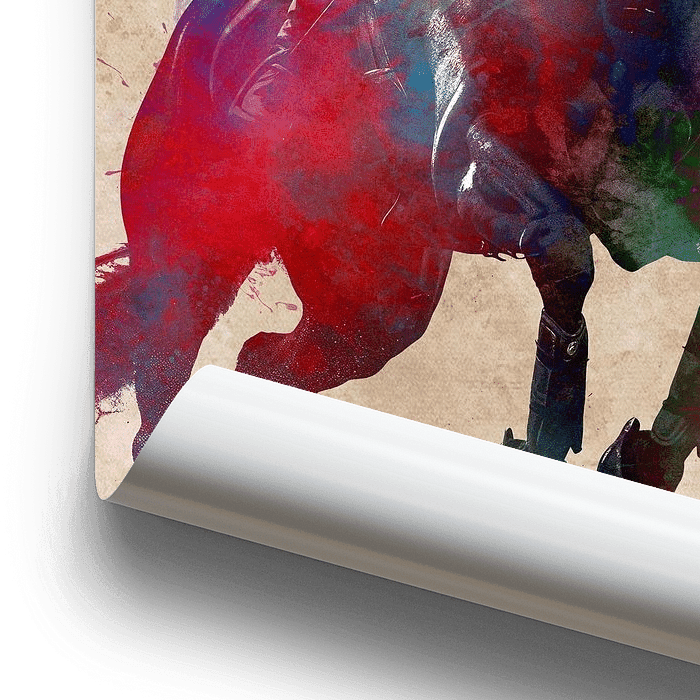 Bestelle dieses abstrakte Wandbild Reiten #Pferd von JBJart Justyna Jaszke als Reproduktion auf Leinwand, Alu-Dibond, als Poster, Fototapete oder Acrylglasbild.