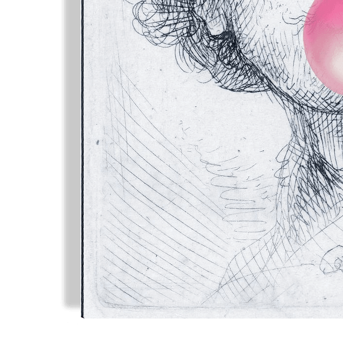 Wenn man genau hinschaut, kann man Rembrandts Lippen durch seine Kaugummiblase hindurch sehen.