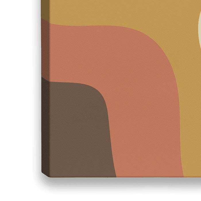 Collage in Retro-Farben. Abstrakte Formen in Braun, Orange, Grün und Senfgelb.