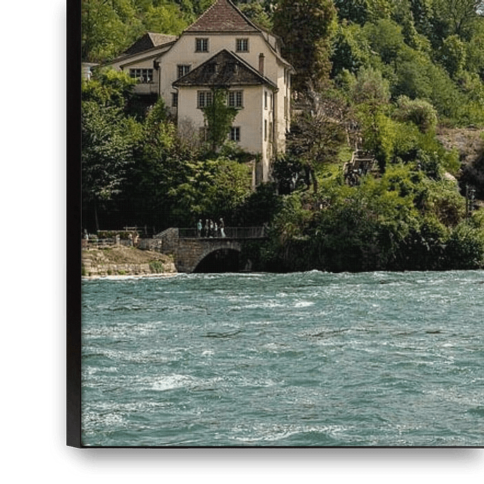 Bestelle dieses Landschafts-Wandbild Rheinfall Wasserfall im Fluss Rhein Panoramablick von Sjoerd van der Wal Fotografie als Reproduktion auf Leinwand, Alu-Dibond, als Poster, Fototapete oder Acrylglasbild.