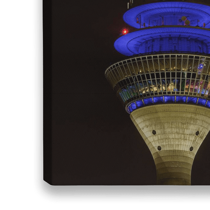 Top of Düsseldorf - Nahaufnahme der Spitze des Düsseldorfer Rheinturms.