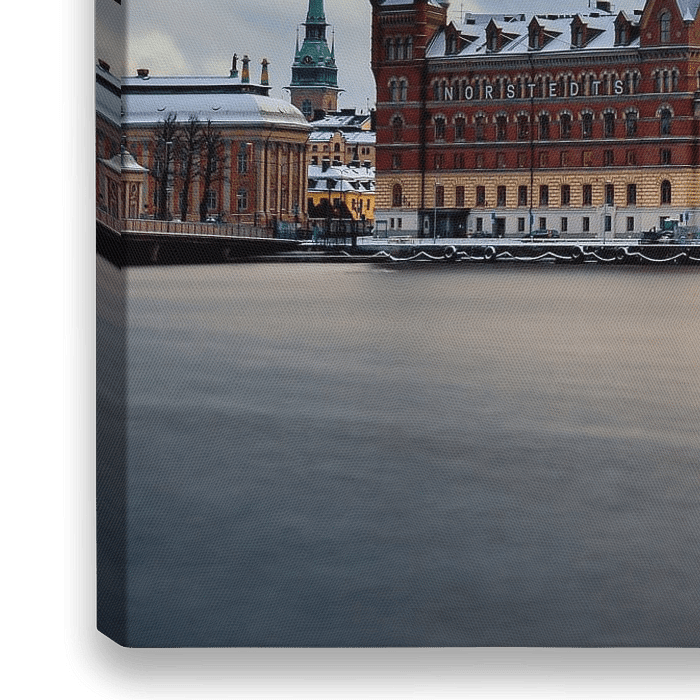 Stockholm ist die schöne Hauptstadt Schwedens und ist auf 14 Inseln gebaut. Überall in der Stadt gibt es Wasser, und das bietet schöne Ausblicke auf die verschiedenen Teile der Stadt. Hier blicken wir in Richtung 'Riddarholmen