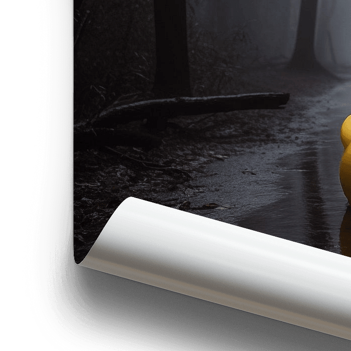 Digitalfoto einer riesigen badenden Ente in einem dunklen Wald.